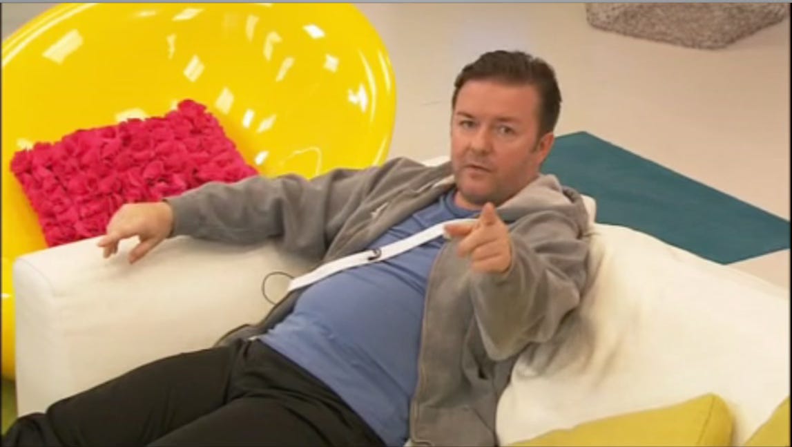 Hence why, at the end of Extras final episode, Andy’s defining catharsis comes on Celebrity Big Brother in what remains perhaps the most powerful moment of comedy-drama Gervais has ever delivered, after David Brent begging to keep his job in the second season finale of The Office. He delivers a powerful and incisive takedown of facile celebrity fame, the British press, and mass entertainment, which prefigures Leveson, the fall of the News of the World, and the reactionary bite-back at Rupert Murdoch’s pervasive newspaper & media empire which has taken place over the last five or more years. Gervais talked fairly recently at where the culture has developed in the wake of these British media developments:
